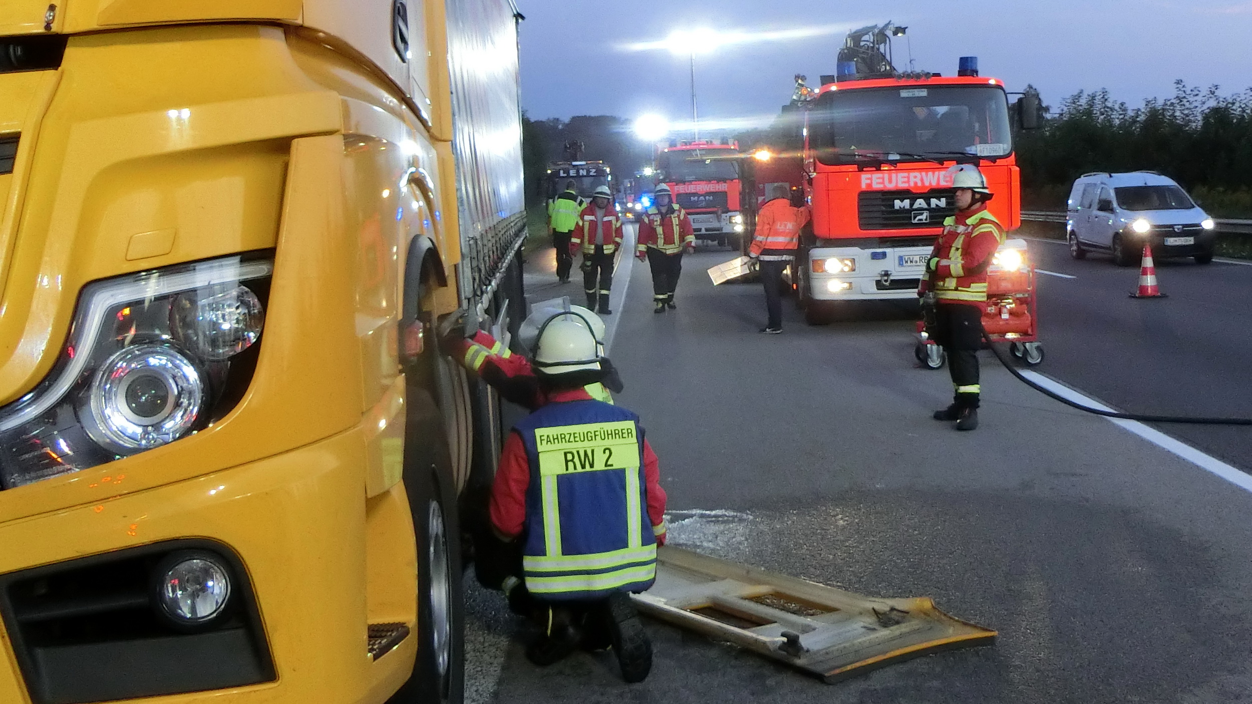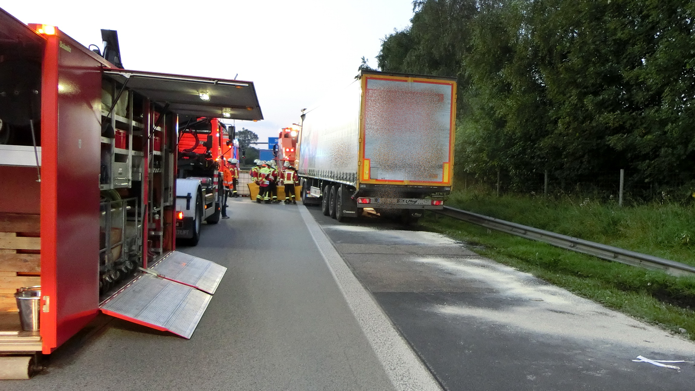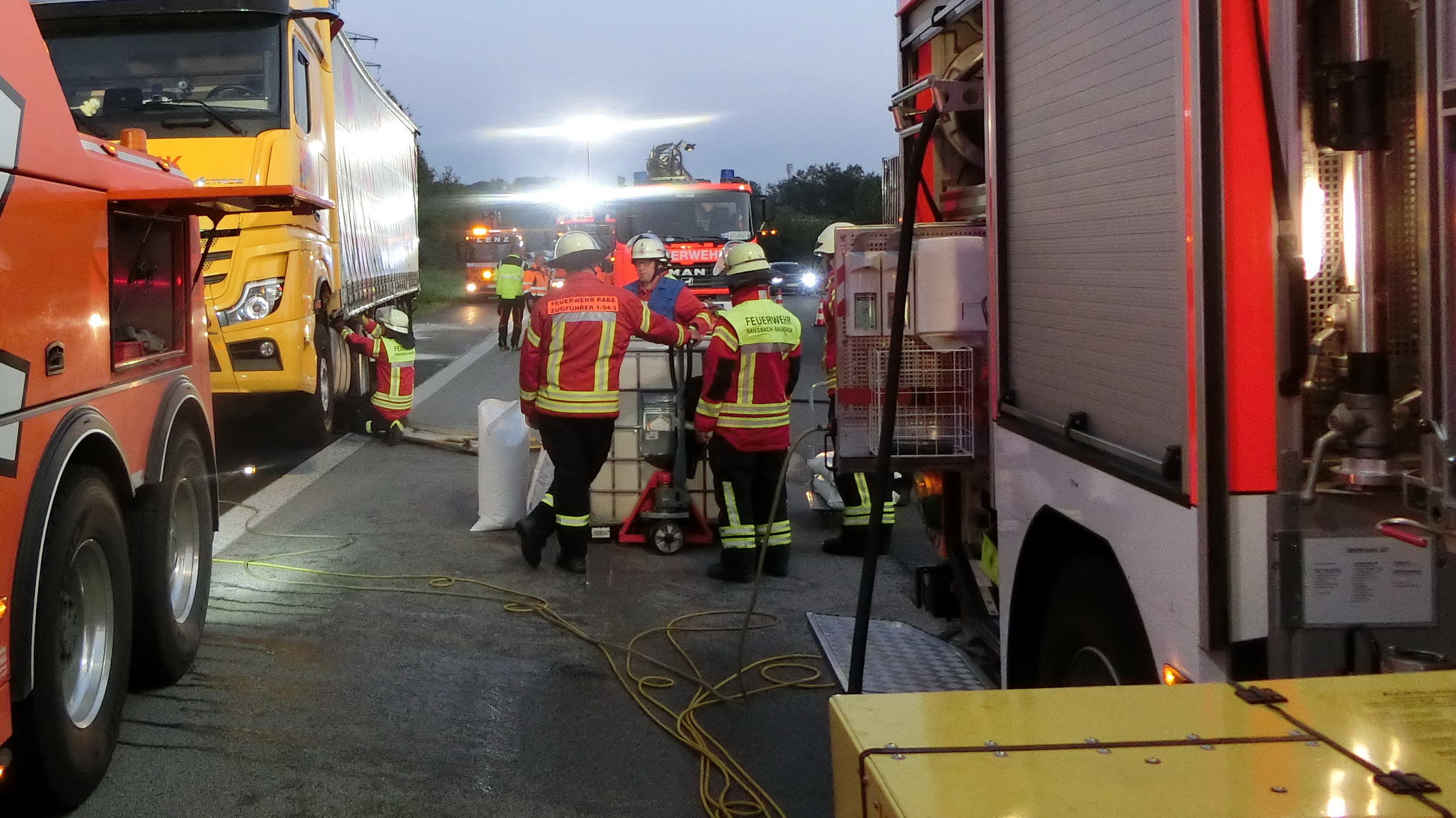 Mogendorf. Am Montag morgen, gegen 6.15 Uhr, wurde die Feuerwehr Ransbach-Baumbach alarmiert, nachdem ein Lastwagen auf der Autobahn nach rechts von der Fahrbahn abkam und rund 75 Meter Leitplanke überfuhr. Dabei wurde dessen Dieseltank beschädigt.