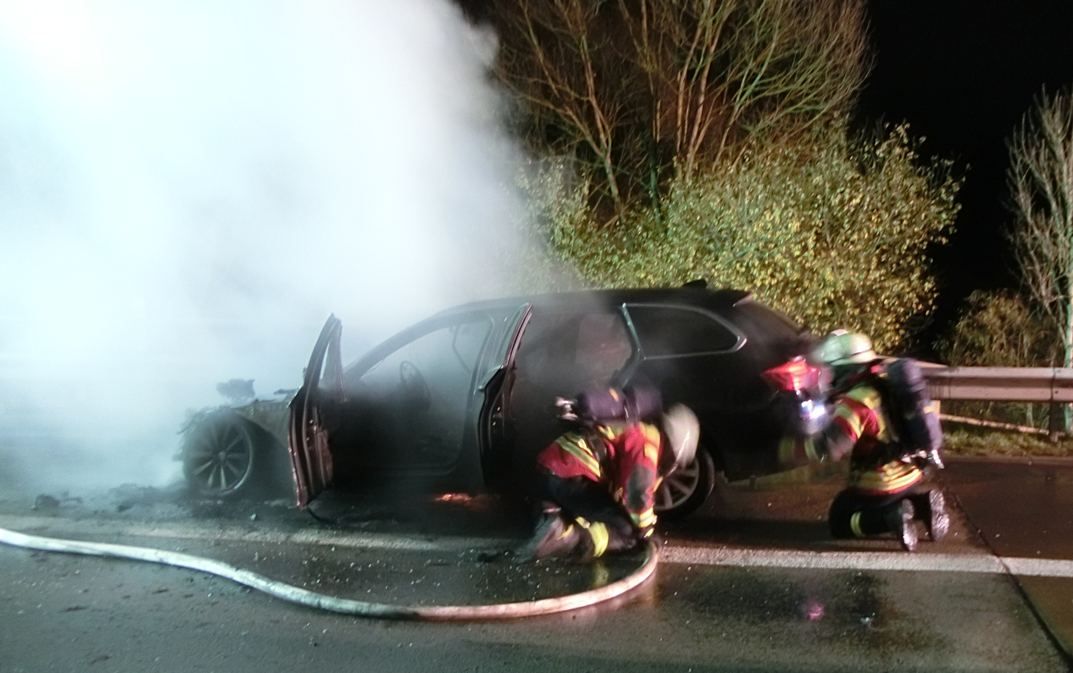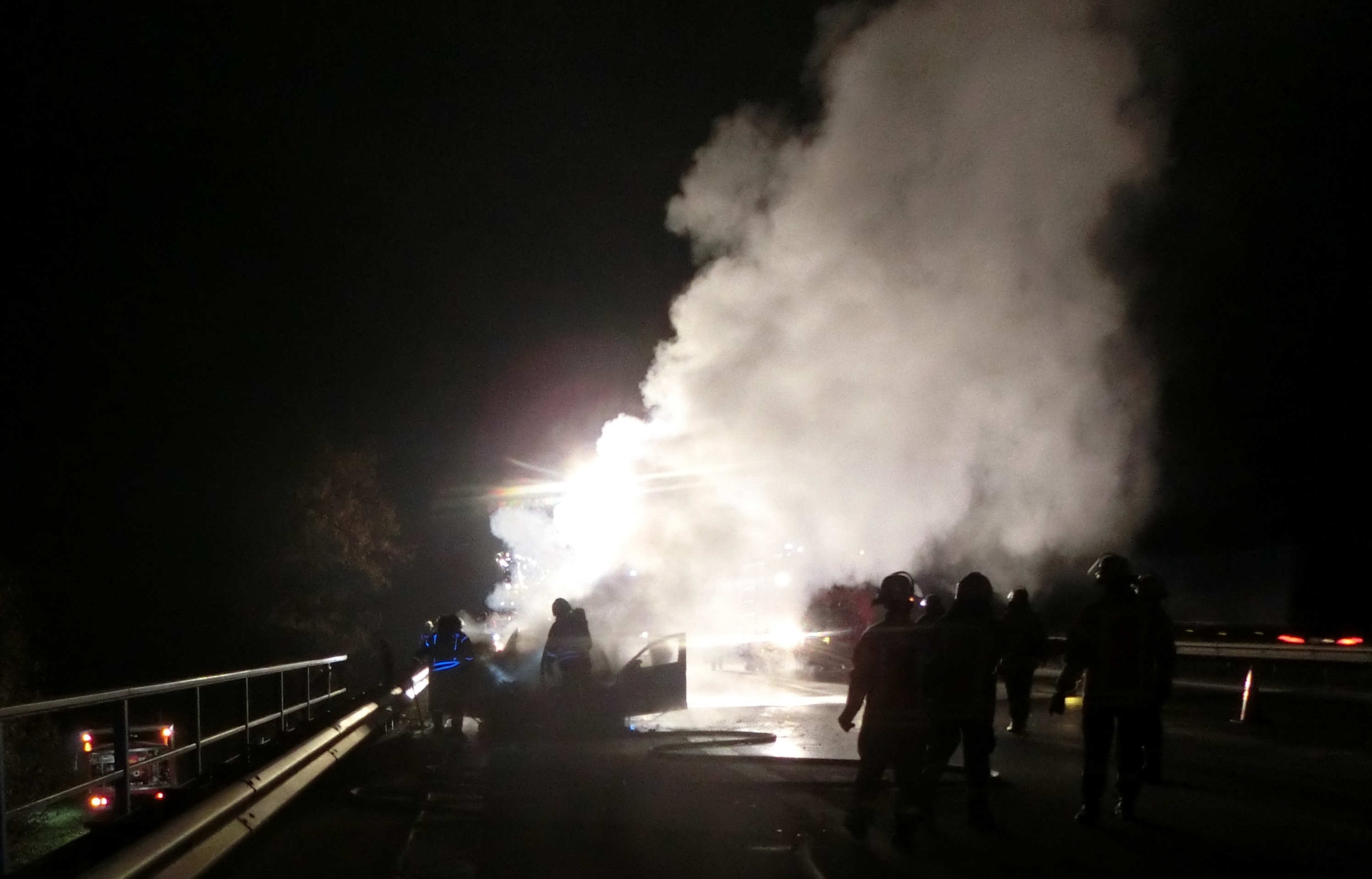 brennender PKW BAB Datum: 20. November 2019 Alarmzeit: 17:52 Uhr Dauer: 1 Stunde 37 Minuten Art: BAB2 Einsatzort: Autobahn A3 Fahrzeuge: KdoW, ELW1, KLAF, MZF, TLF 24/48, LF 20/20, RW-2 Weitere Kräfte: – FEZ RaBa -, Freiwillige Feuerwehr Haiderbach Einsatzbericht:
