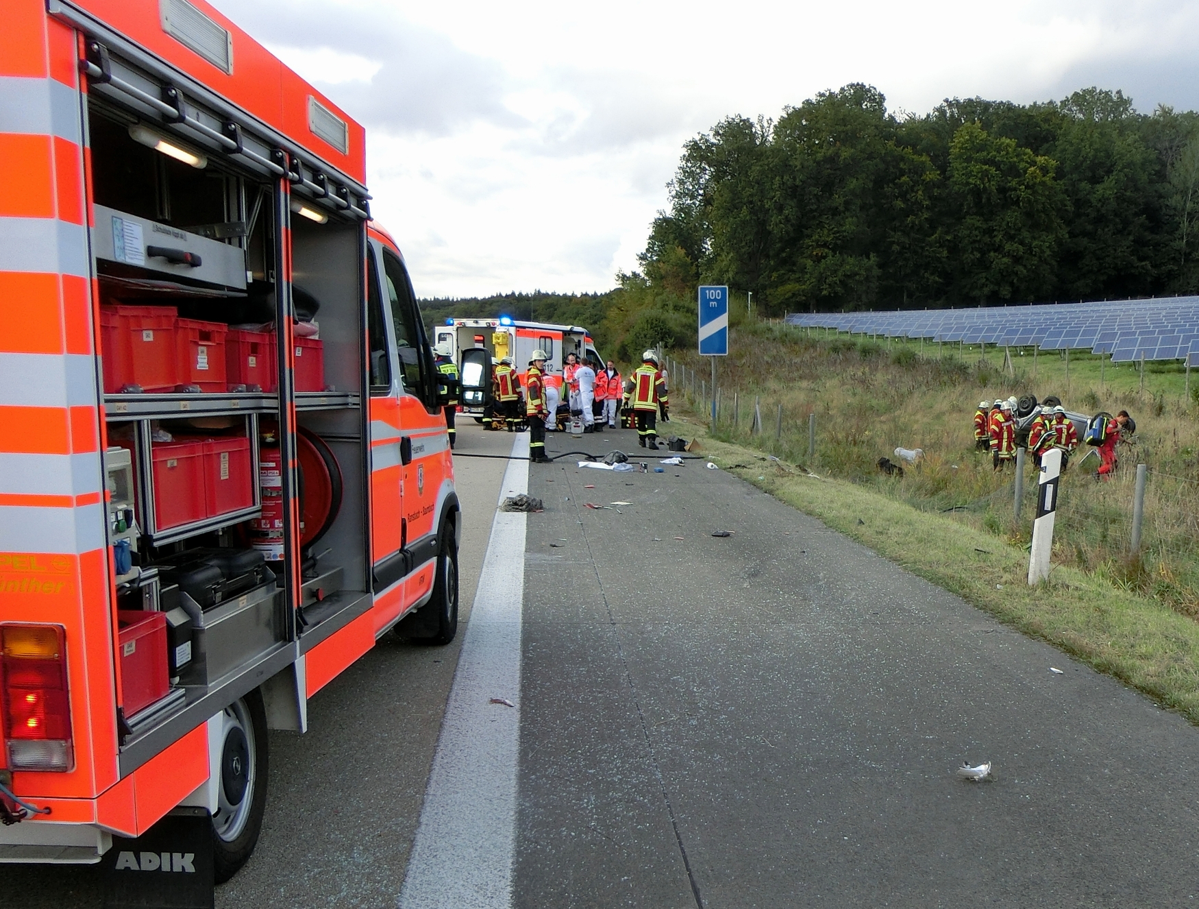 Am Montagnachmittag gegen 17:00 Uhr kam es auf der BAB 3 in Fahrtrichtung Köln zu einem Verkehrsunfall mit zwei beteiligten Pkw. Vermutlich aufgrund nicht angepasster Geschwindigkeit verlor die allein im ihrem Pkw befindliche, 21-jährige Fahrerin die Kontrolle über ihr Fahrzeug und kollidierte mit dem vor ihr fahrenden Fahrzeug sowie der linksseitigen Mittelschutzplanke. In Folge wurde der Pkw der Unfallverursacherin nach rechts in Richtung Grünfläche abgewiesen und kam dort, nach mehrmaligen Überschlägen, auf dem Dach liegend zum Stillstand. Durch Ersthelfer wurde die im Fahrzeug leicht eingeklemmte Fahrerin aus ihrem PKW gerettet. Sie wurde durch den Unfall schwerverletzt und mittels Rettungshubschrauber abtransportiert. Lebensgefahr besteht nicht.