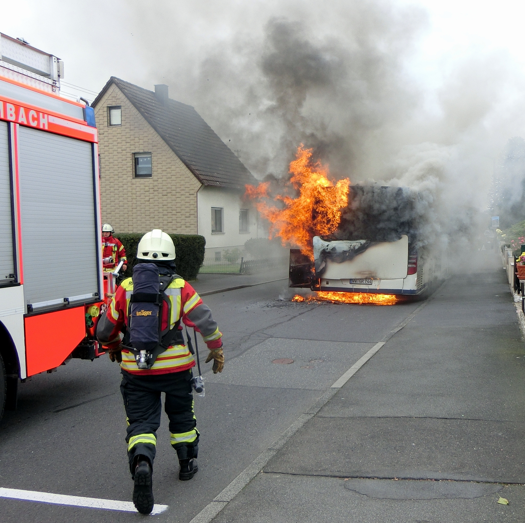 Glimpflich ausgegangen ist ein Busbrand am Montagmittag in Ransbach-Baumbach. Gegen 12 Uhr schlugen in der Hochstraße aus dem Heckbereich des Linienbusses, der auf dem Weg von Montabaur nach Höhr-Grenzhausen war, in Flammen.