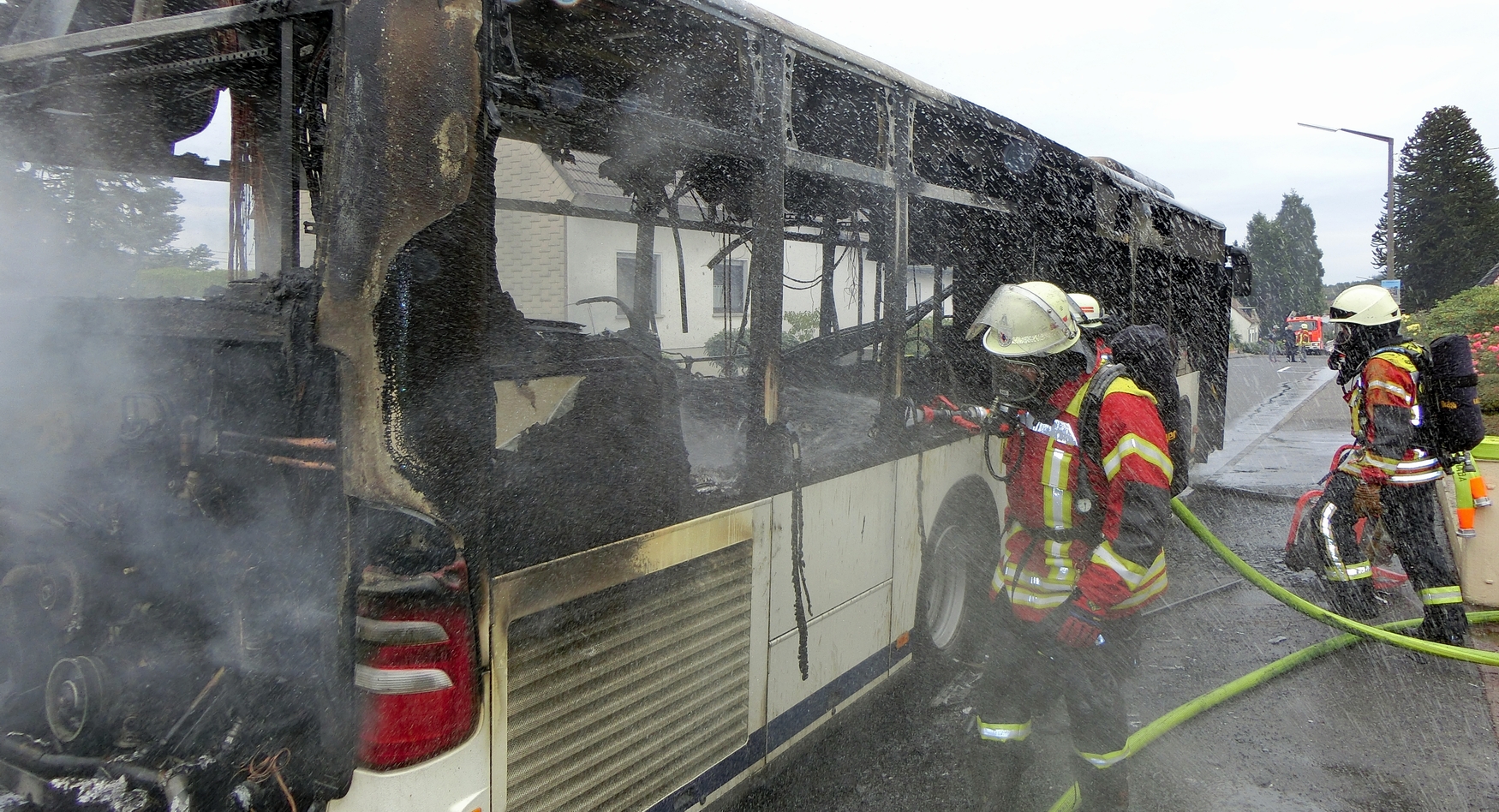 Der Busfahrer stoppte das Gefährt sofort und verließ, ebenso wie die vier Fahrgäste, unverletzt den Bus. Beim Eintreffen der Feuerwehr Ransbach-Baumbach stand nach Angaben von Wehrführer Olaf Faller der komplette Heckbereich in Flammen. Das Feuer breitete sich von dort innerhalb kürzester Zeit auf den kompletten Bus aus.