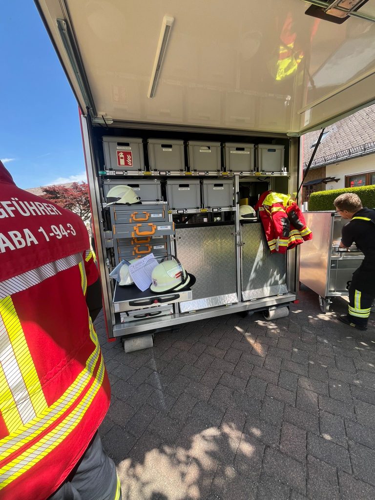 Wir betreuten die Ausgabe von Atemschutzgeräten an die eingesetzten Feuerwehren.