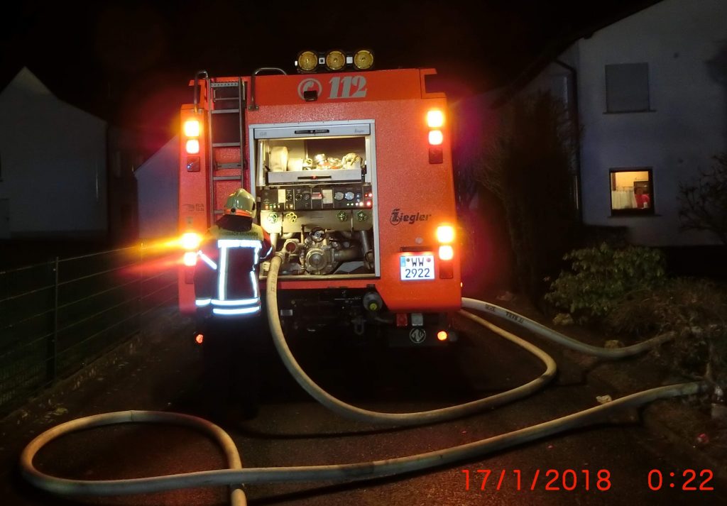 Nauort. Die Feuerwehrleute aus Nauort veranlassten direkt eine Nachalarmierung der Einheiten Alsbach, Sessenbach, Wirscheid, Caan, Haiderbach. Ebenfalls wurden die Drehleitern aus Höhr-Grenzhausen und Ransbach-Baumbach angefordert. Die Feuerwehrleute konnten nicht mehr verhindern, dass das Feuer sich auf das Obergeschoß ausbreitete. Die Hitzeentwicklung war einfach zu groß.