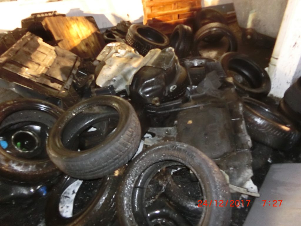 Brand außerhalb der Werkstatt, Feuer auf das Dach übergegriffen