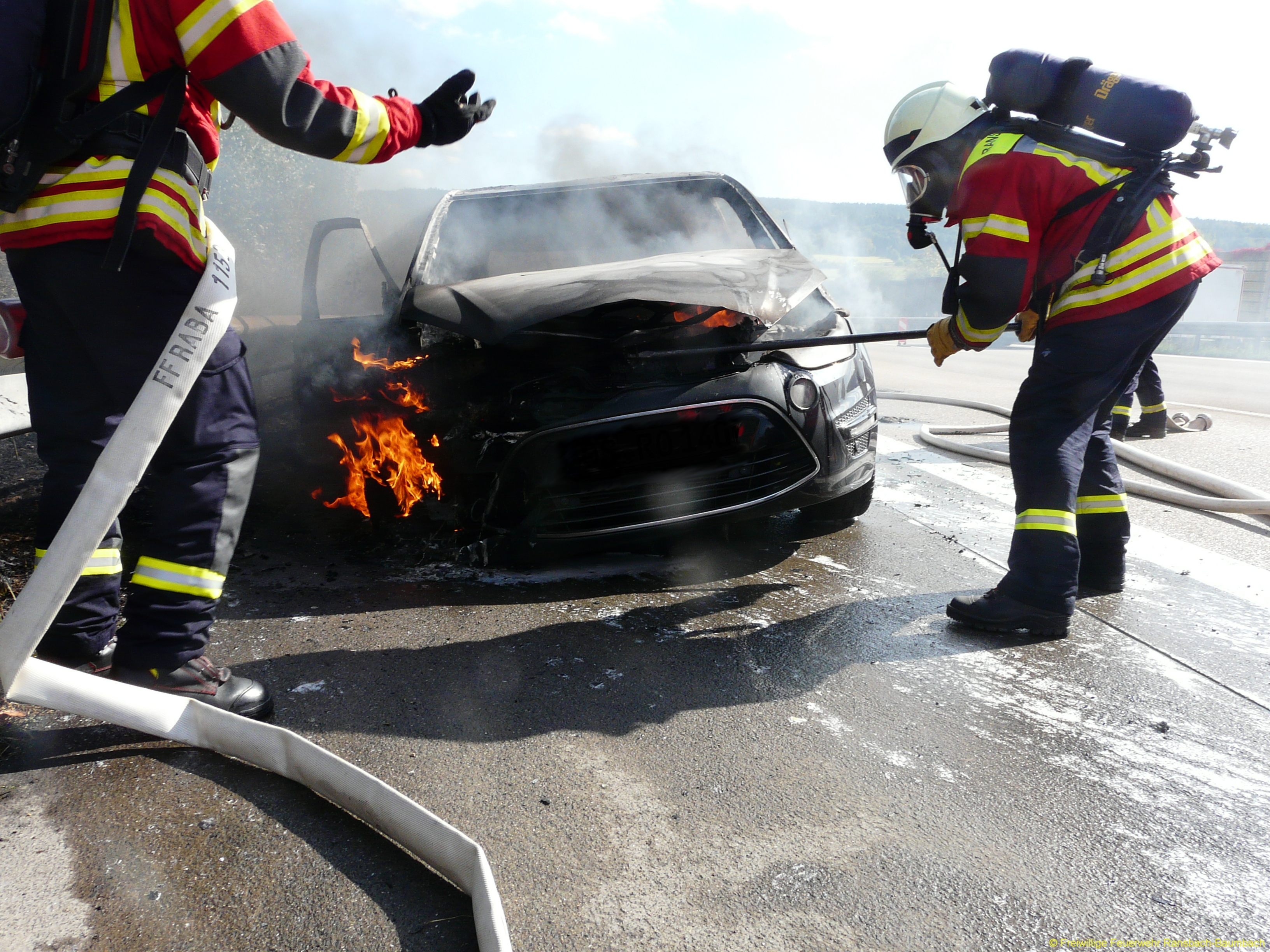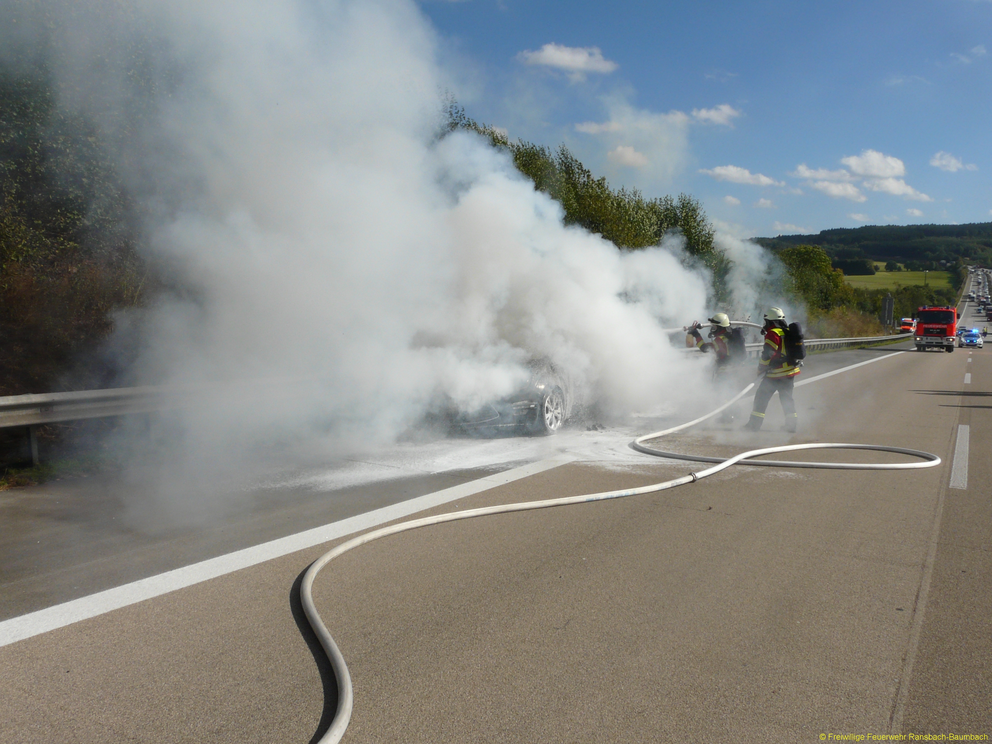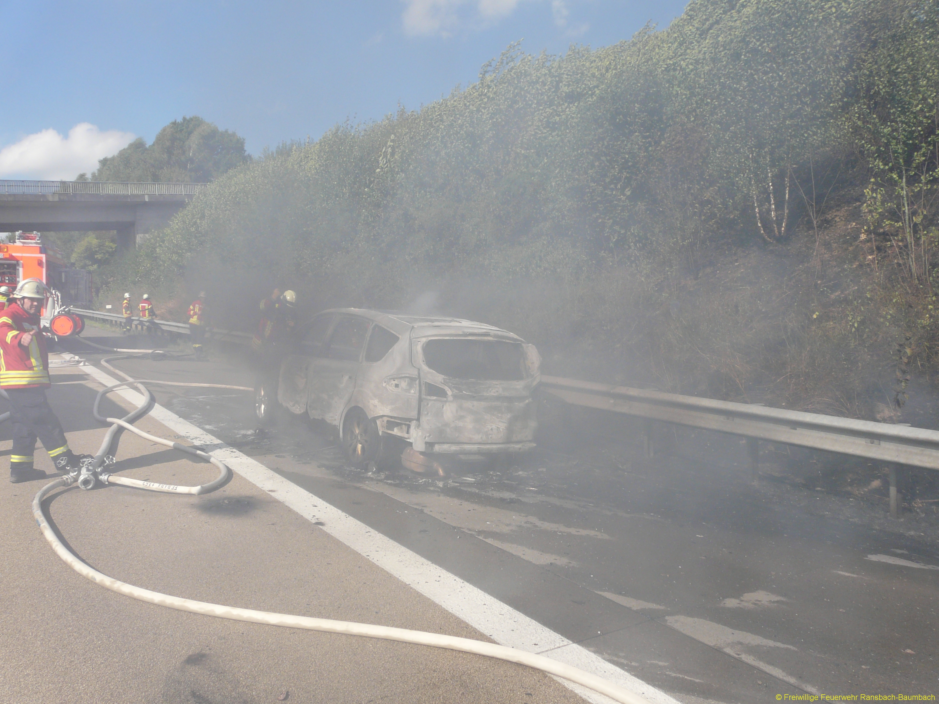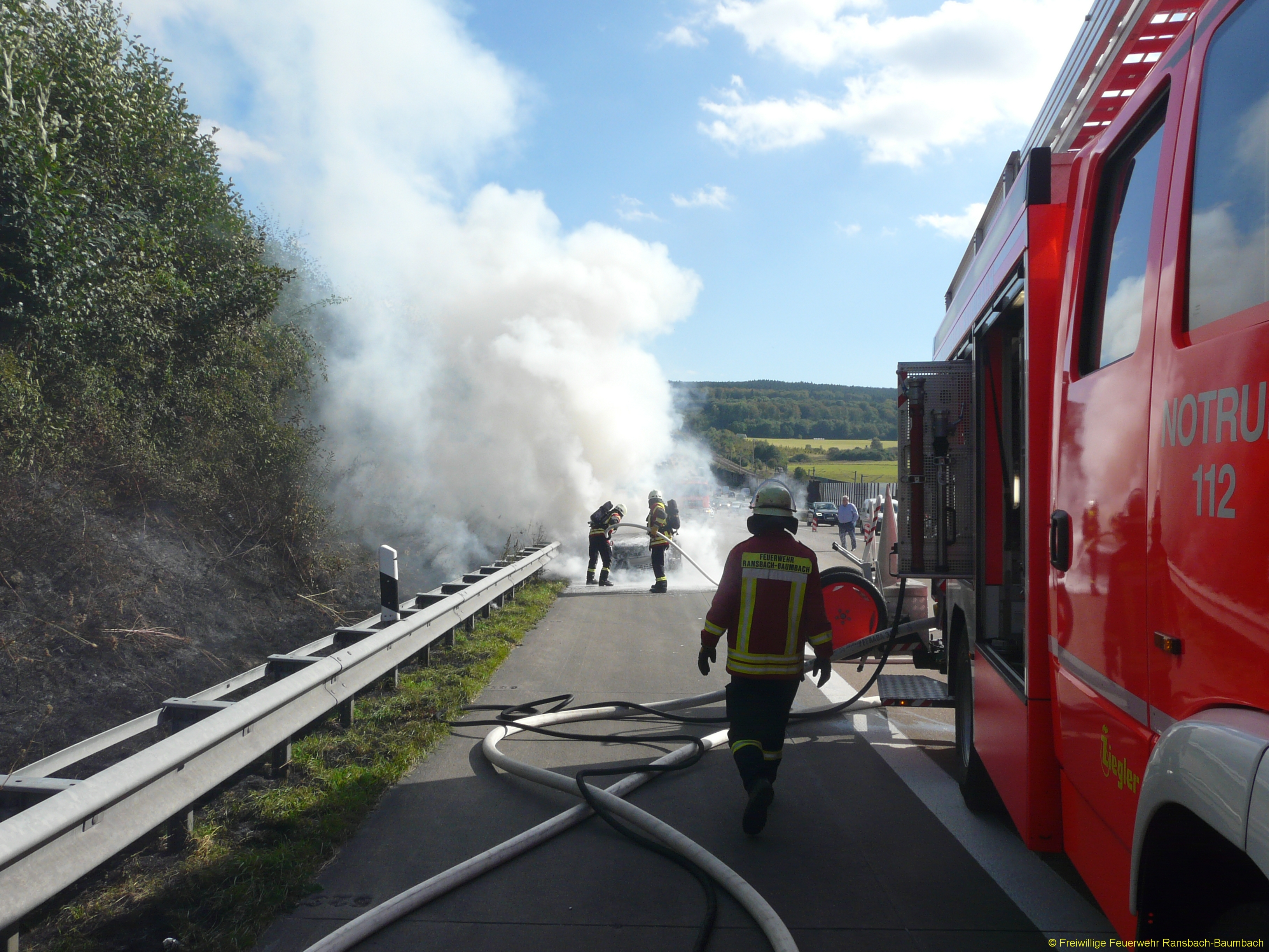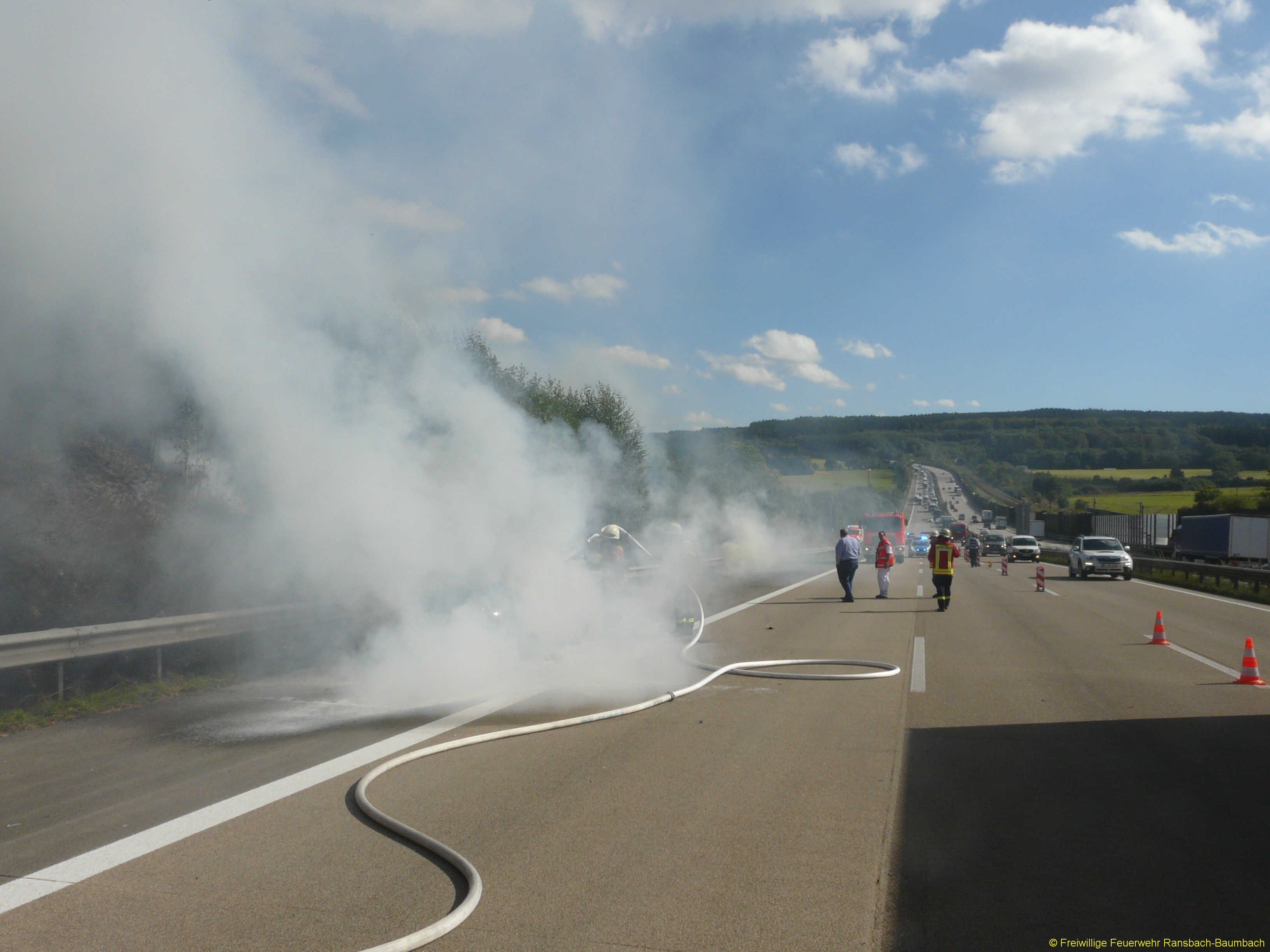 Auf der Autobahn A3 in Fahrtrichtugn Köln kam es am frühen Nachmittag zu einem PKW-Brand. Beim Eintreffen der Feuerwehr Ransbach-Baumbach stand der PKW bereits im Vollbrand.