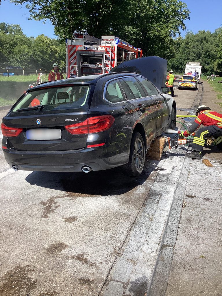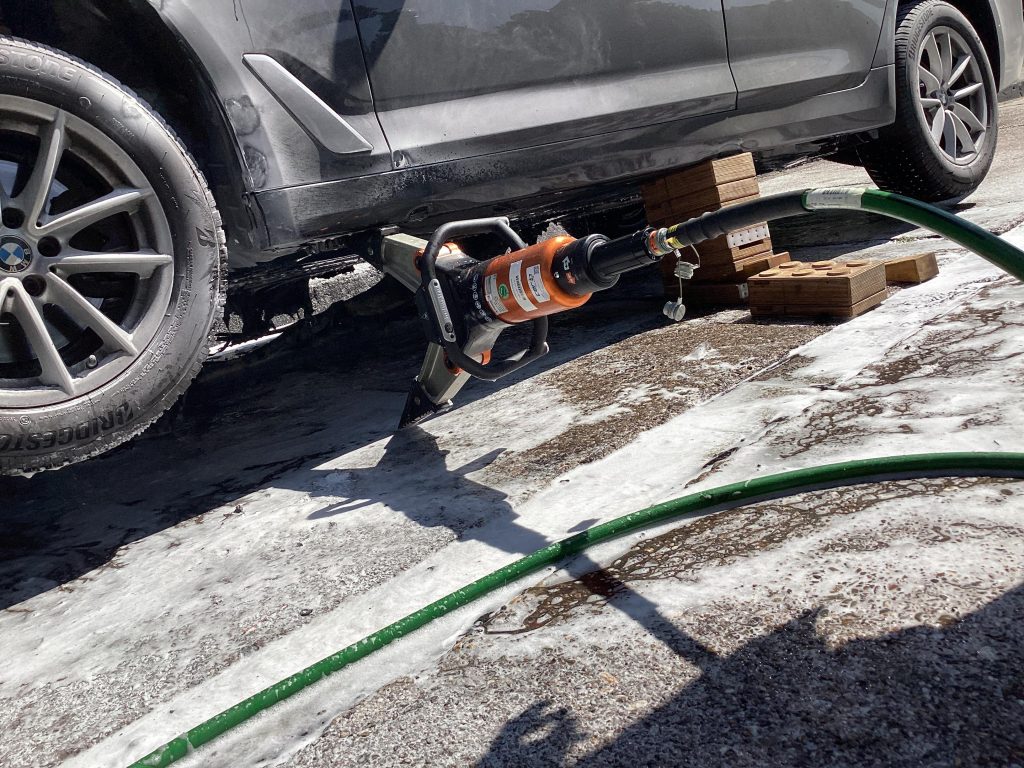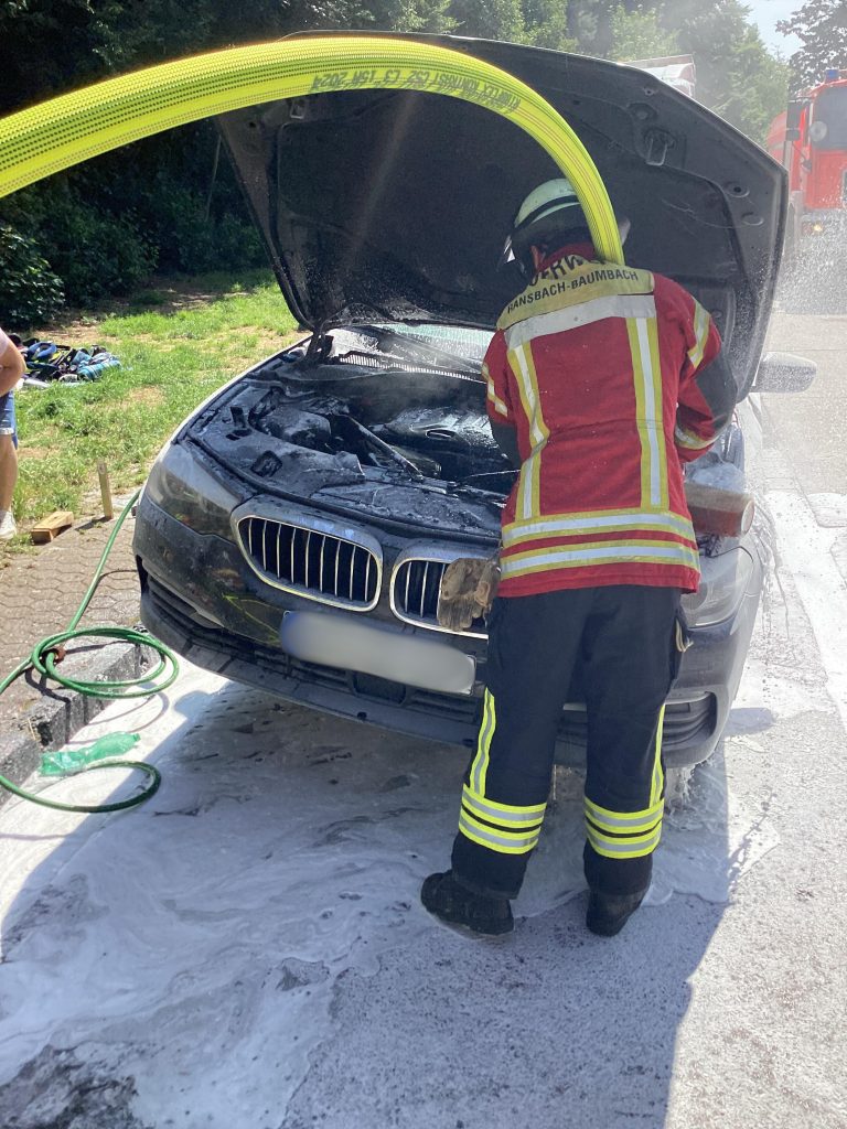 Am Samstagmorgen wurden wir zu einem PKW Brand auf den Parkplatz Mühlholz auf der A 48 in Fahrtrichtung Koblenz alarmiert. Es handelte sich um einen Entstehungsbrand, der weitestgehend mit einem Feuerlöscher gelöscht wurde. Mit Hilfe eines C-Rohrs und des F500 Schaumrohrs wurden Nachlöscharbeiten durchgeführt. Um auch unter dem PKW löschen zu können, nutzten wir den hydraulischen Spreizer unseres HLFs um den PKW seitlich anzuheben.