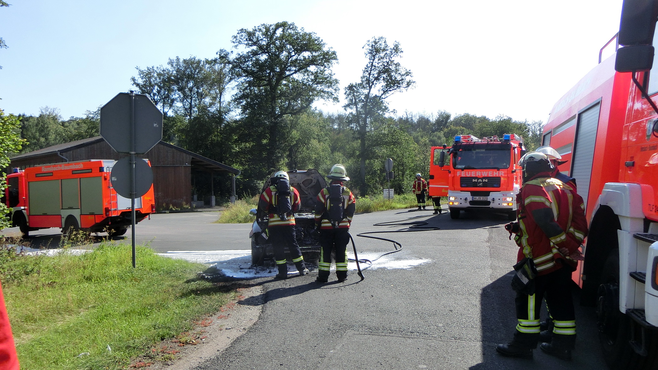 PKW Brand Autobahn Datum: 8. September 2021 Alarmzeit: 15:05 Uhr Dauer: 1 Stunde 7 Minuten Art: B1.03 Fahrzeugbrand klein Einsatzort: Autobahn A48/A3 Fahrzeuge: KdoW, MZF, TLF 24/48, LF 20/20, RW-2 Weitere Kräfte: – FEZ RaBa -, Polizei Einsatzbericht: