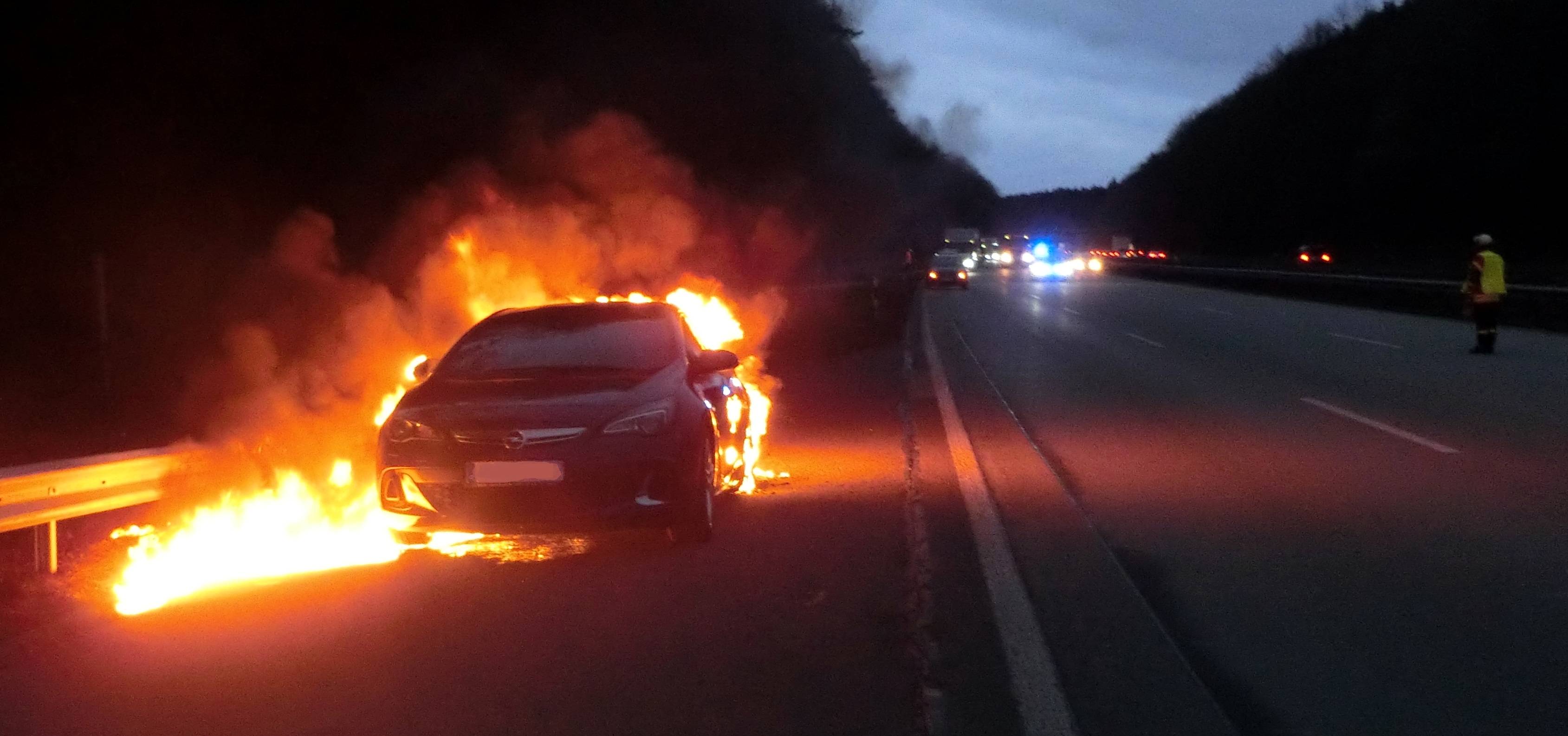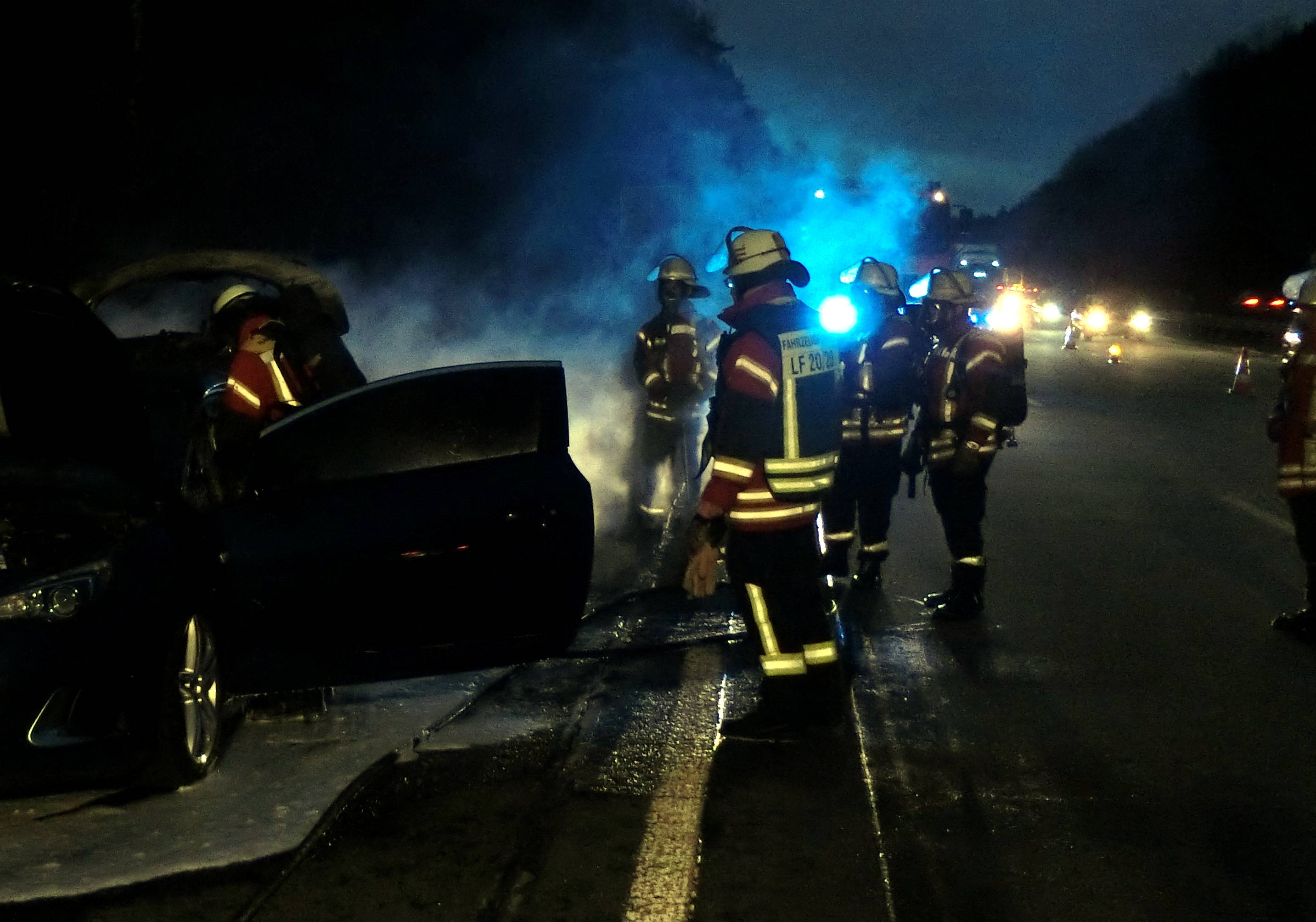 Vollbrand eines PKW auf der Autobahn in Richtung Koblenz