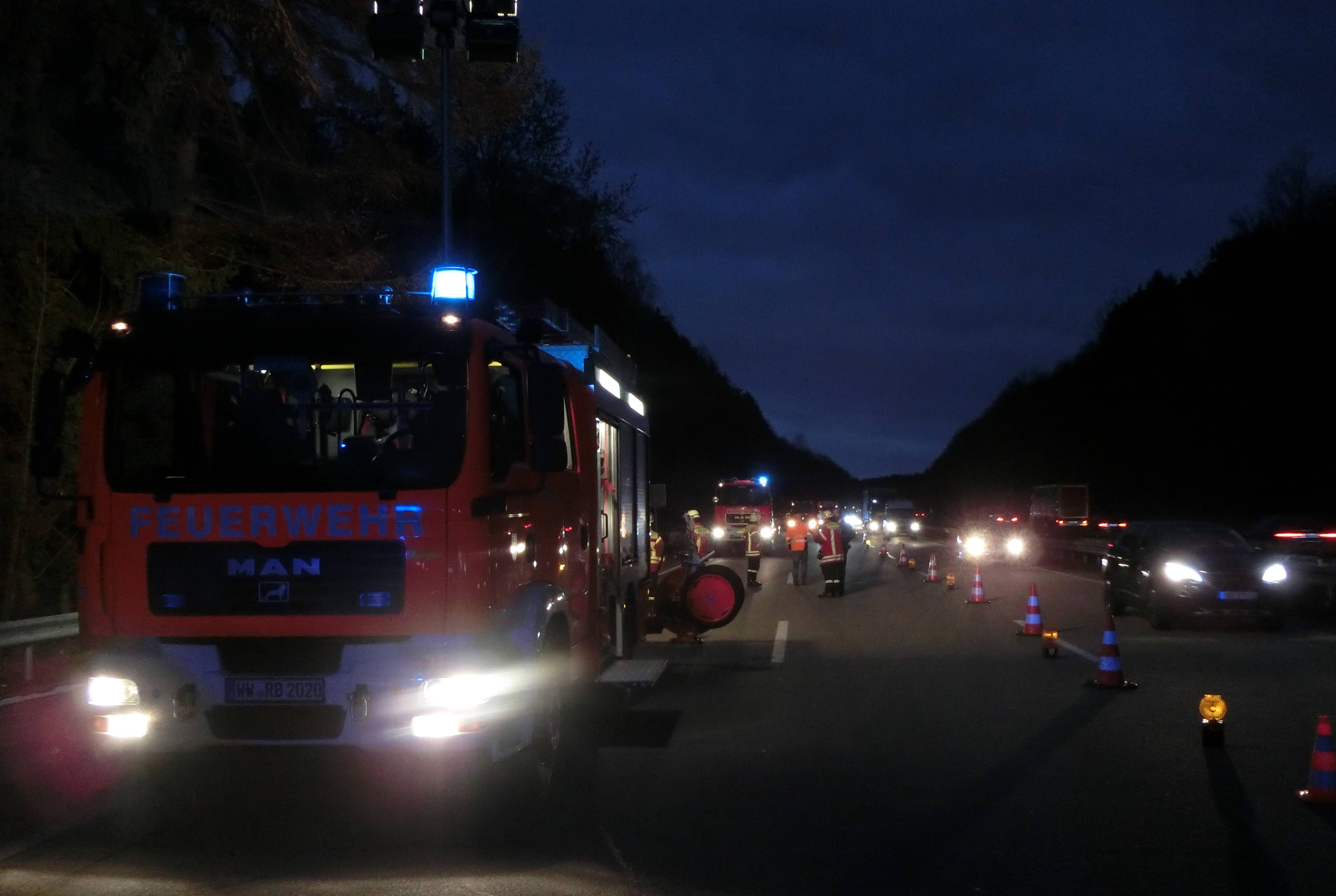 Während der Löscharbeiten Vollsperrung der Autobahn