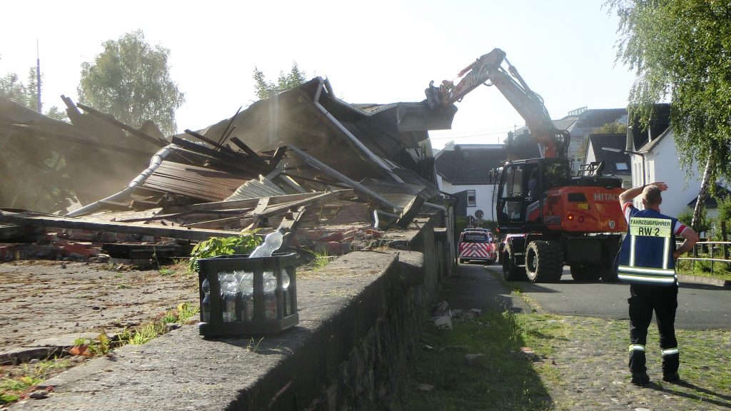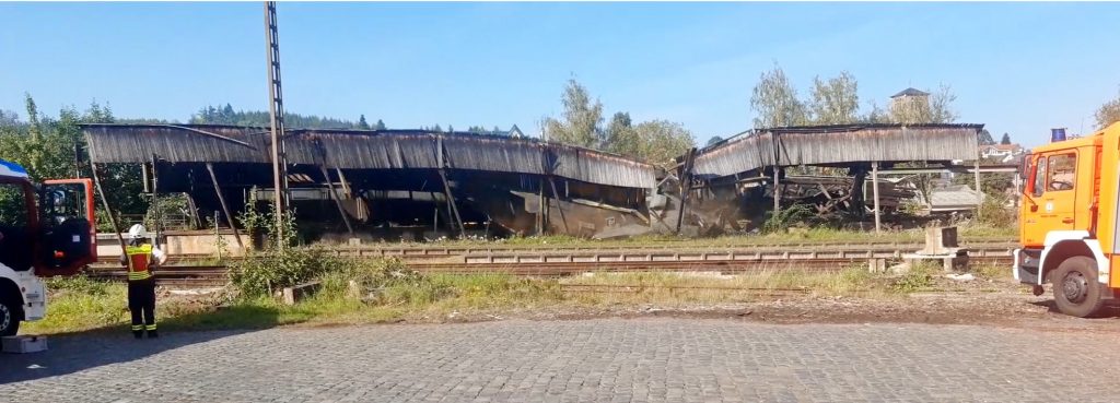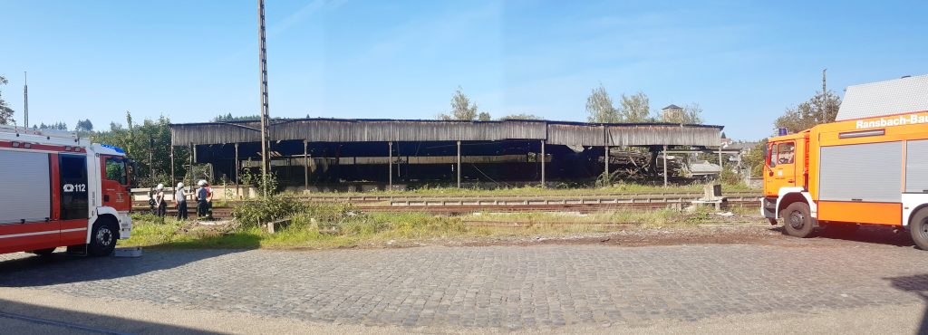 Am 09.09.2023 kam es gegen 14:24 Uhr im Bereich der Bahnhofstraße in Ransbach Baumbach zu einem Teileinsturz einer alten Betriebshalle im Bereich des dortigen ehemaligen Bahnhofs. Das Dach der Halle kam auf einer Fläche von etwa 20-30qm herunter. Da der Bereich bereits länger aufgrund Einsturzgefahr abgesperrt ist kam bei dem Einsturz niemand zu Schaden, es entstand kein Sachschaden. Der Bereich wurde durch die Freiwillige Feuerwehr Ransbach-Baumbach vorläufig gesichert, ob der Rest der Halle unverzüglich abgerissen werden muss wird durch die zuständige Stelle derzeit noch geprüft.