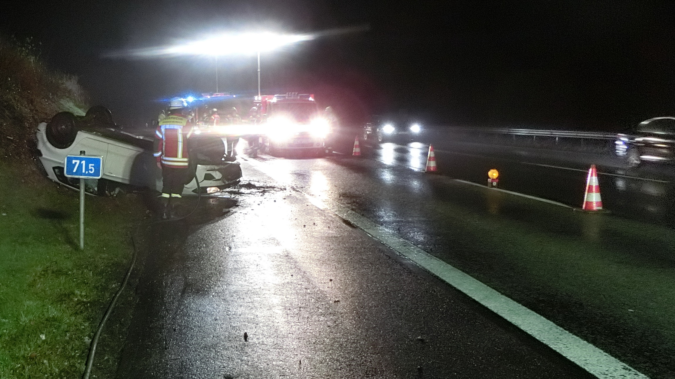 Unfall – Person eingeklemmt Datum: 26. Dezember 2021 Alarmzeit: 21:50 Uhr Dauer: 2 Stunden 5 Minuten Art: H2.03 VU P Klemm Einsatzort: Autobahn A3 Fahrzeuge: KdoW, KLAF, MZF, TLF 24/48, LF 20/20, RW-2 Weitere Kräfte: – FEZ RaBa -, Polizei, Rettungsdienst Einsatzbericht: