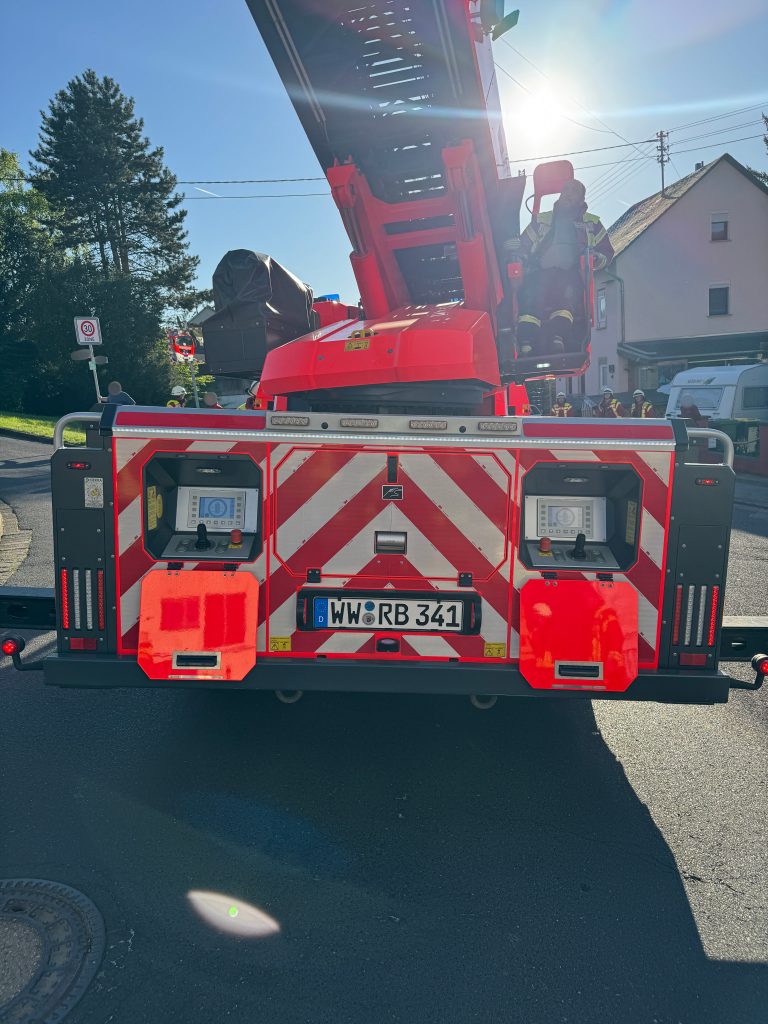 Noch während des Abbaus vom Florianstag wurden wir zu einem Einsatz nach Hundsdorf alarmiert. Der Rettungsdienst vor Ort benötigte unsere Hilfe, um einen Patienten schonend über die Drehleiter aus dem Obergeschoss bis zum Rettungswagen zu transportieren. Die Kameraden der Feuerwehr Hundsdorf hatten bereits die Straße abgesperrt.