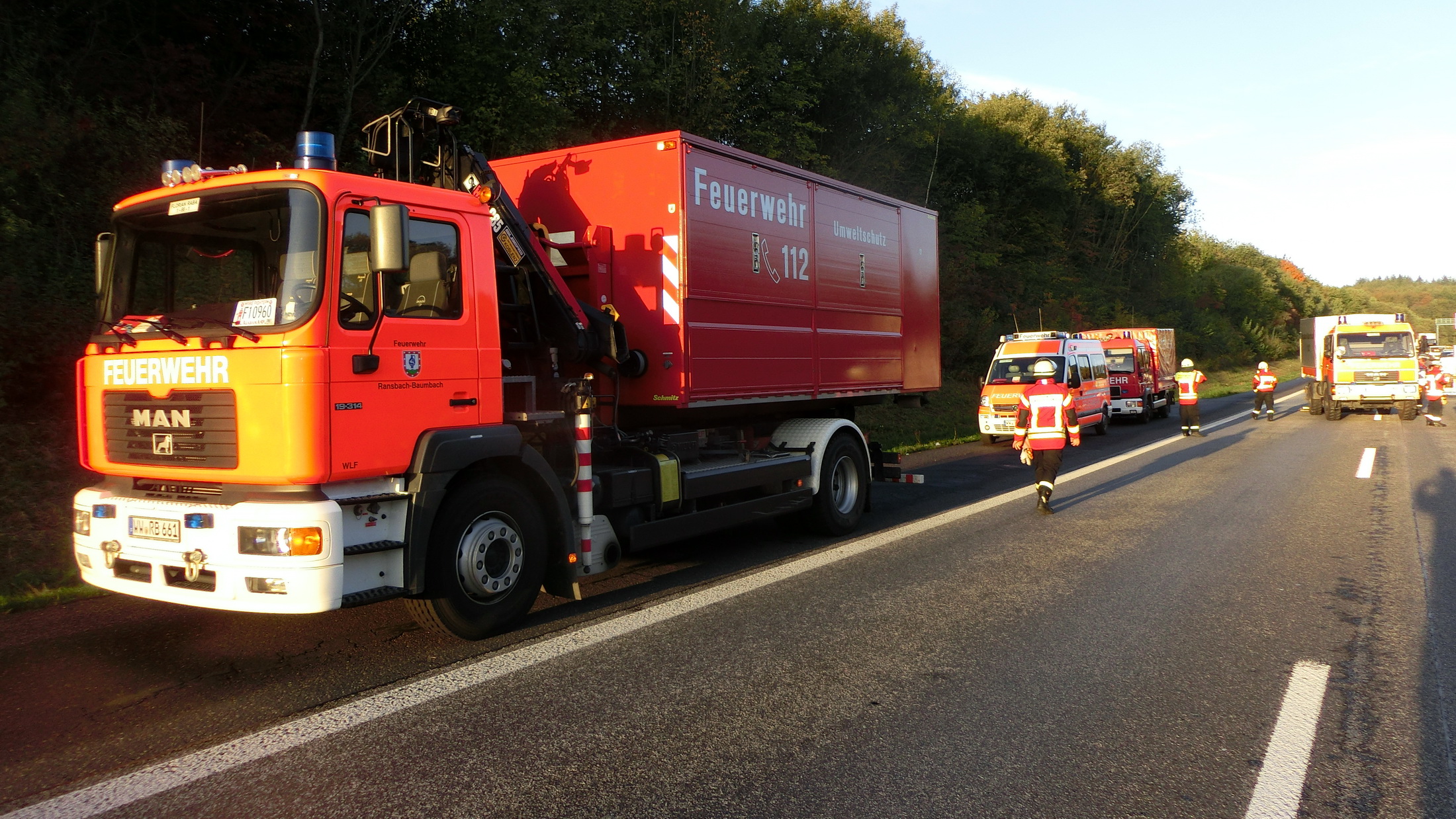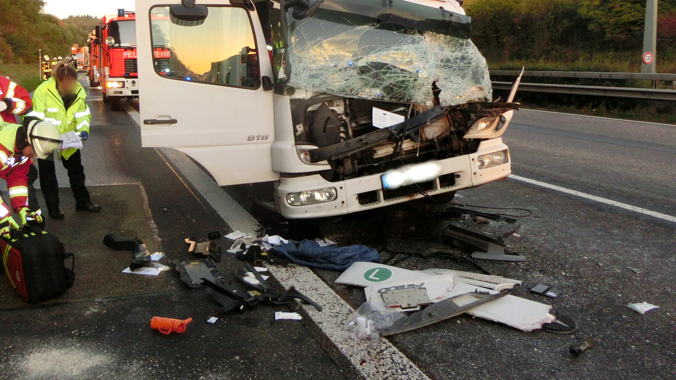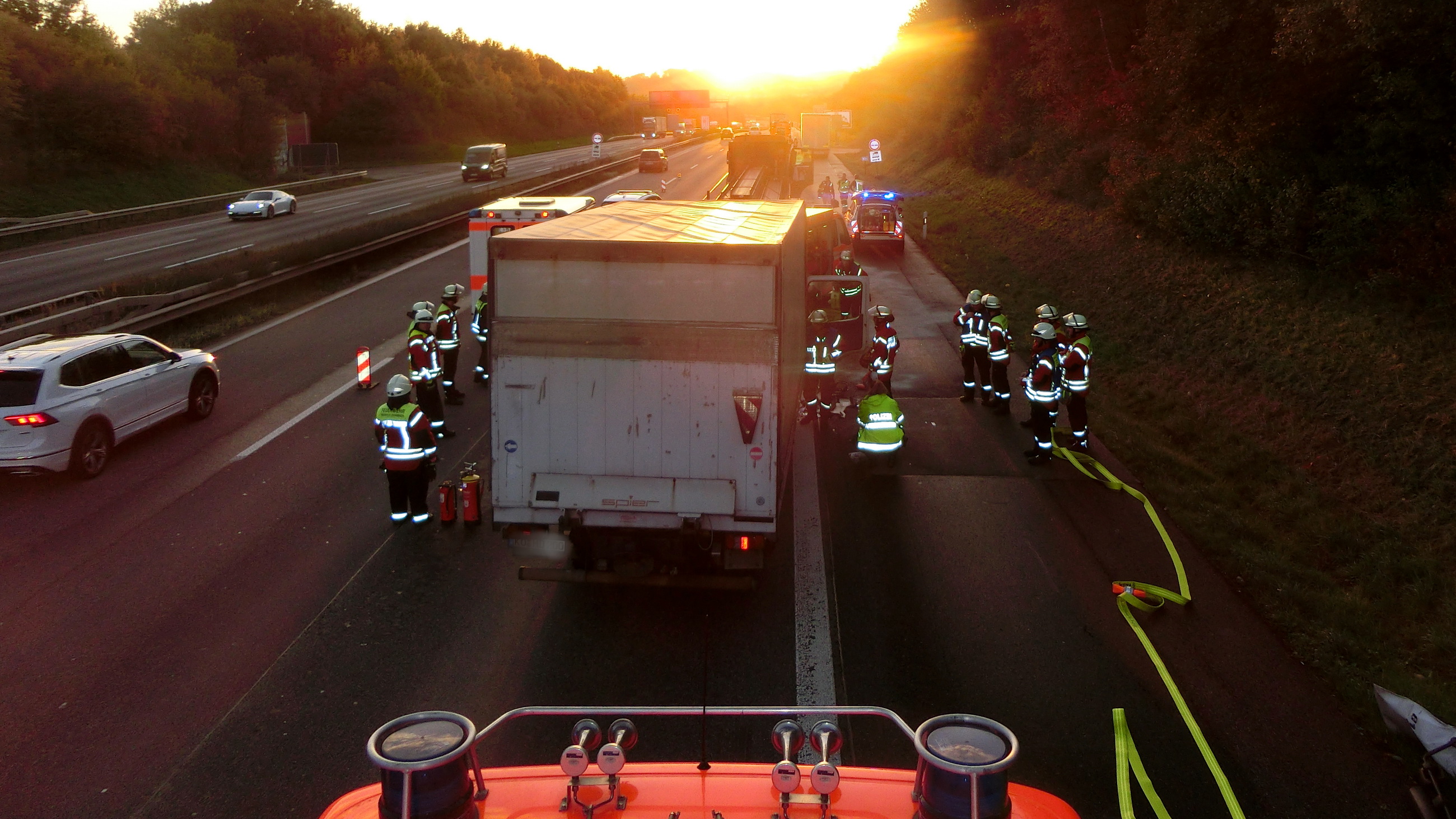 Am heutigen 06.10.2022 kam es gegen 07.01 Uhr zu einem schweren Verkehrsunfall im Bereich der Überleitung von der BAB 48 zur BAB 3 in Fahrtrichtung Frankfurt in der Gem. Montabaur. Dort fuhr der Fahrer eines 7,5 t auf einen stehenden LKW auf und wurde eingeklemmt. Die Rettungsarbeiten dauern zurzeit noch an. Es ist mit erheblichen Verkehrsbeeinträchtigungen auf der A 3 Rtg. Frankfurt und auch der A 48 in Richtung Autobahndreieck Dernbach zu rechnen.