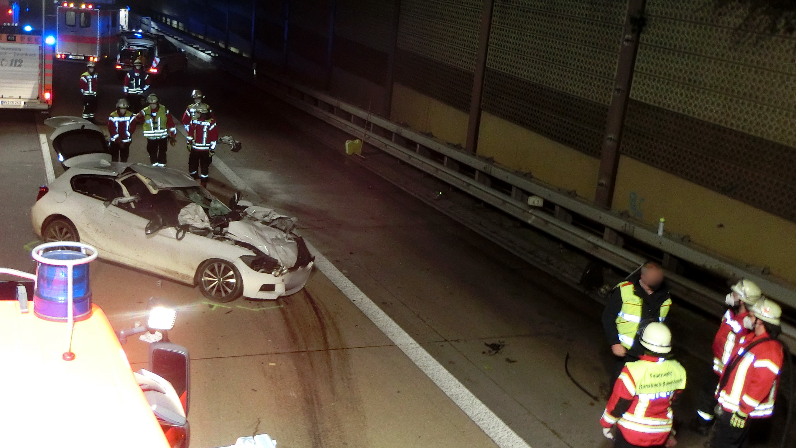 Der PKW-Fahrer wurde leicht verletzt, an seinem Fahrzeug entstand Totalschaden. Zunächst war der Rettungsleitstelle Montabaur gemeldet worden, dass der Fahrer in seinem Fahrzeug eingeklemmt sei. Deshalb wurde die Feuerwehr Ransbach-Baumbach zur Unfallstelle gerufen. Der Fahrer konnte jedoch ohne technische Hilfe das Fahrzeug verlassen. Die Feuerwehr stellte den Brandschutz sicher und unterstützte bei den Aufräumarbeiten. Nach notärztlicher Erstversorgung wurde der Mann vom Rettungsdienst in ein Krankenhaus gebracht. Die Richtungsfahrbahn Frankfurt wurde voll gesperrt.